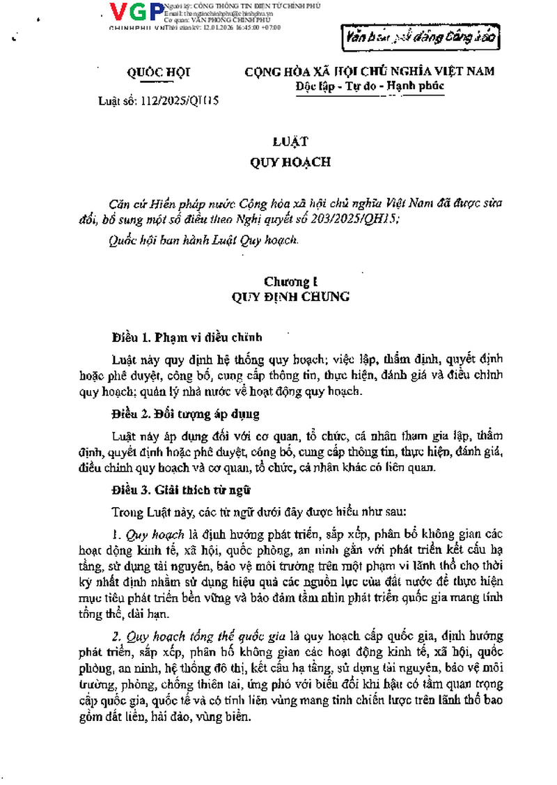 Luật số 112/2025/QH15 của Quốc hội: Luật Quy hoạch và các văn bản liên quan