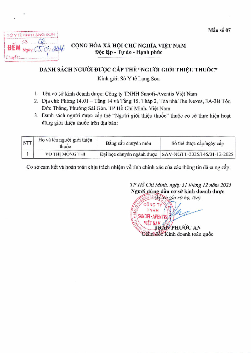 Danh sách người được cấp thẻ người giới thiệu thuốc
