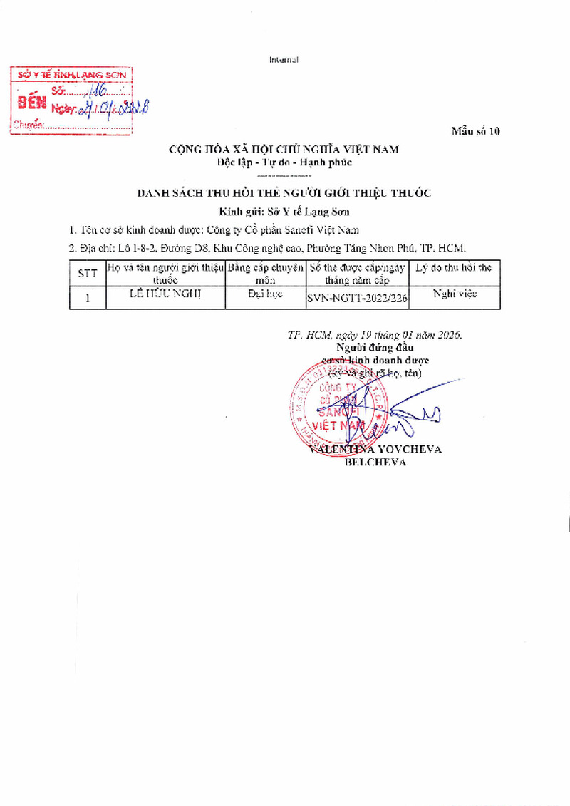 Danh sách người được cấp thẻ người giới thiệu thuốc