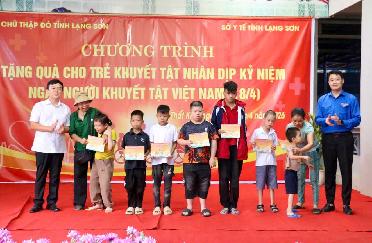 Sáng ngày 15/4/2026, Chương trình tặng quà cho trẻ em khuyết tật được tổ chức tại Mái ấm tình thương Vinh Sơn, xã Thất Khê: tham dự có đại diện Lãnh đạo Ủy ban MTTQ Việt Nam tỉnh, Sở Y tế, Báo và Phát thanh truyền hình tỉnh, Hội Chữ thập đỏ tỉnh và Lãnh đạo UBND các xã Thất Khê, Tràng Định đã đến thăm và động viên chia sẻ sự nỗ lực, tận tâm, trách nhiệm của những cán bộ nhân viên trong Mái ấm tình thương Vinh Sơn. Tại đây Đoàn đã trao tặng 40 suất quà, mỗi suất trị giá 500.000 đồng với tổng giá trị là 20 triệu đồng từ Quỹ Bảo trợ trẻ em của tỉnh cho trẻ em khuyết tật.