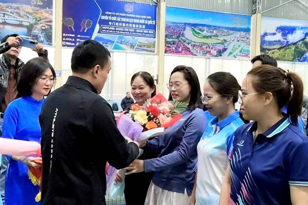 Đồng chí Nguyễn Thế Toàn, GĐ Sở Y tế tặng hoa cho các đoàn vận động viên tham gia thi đấu