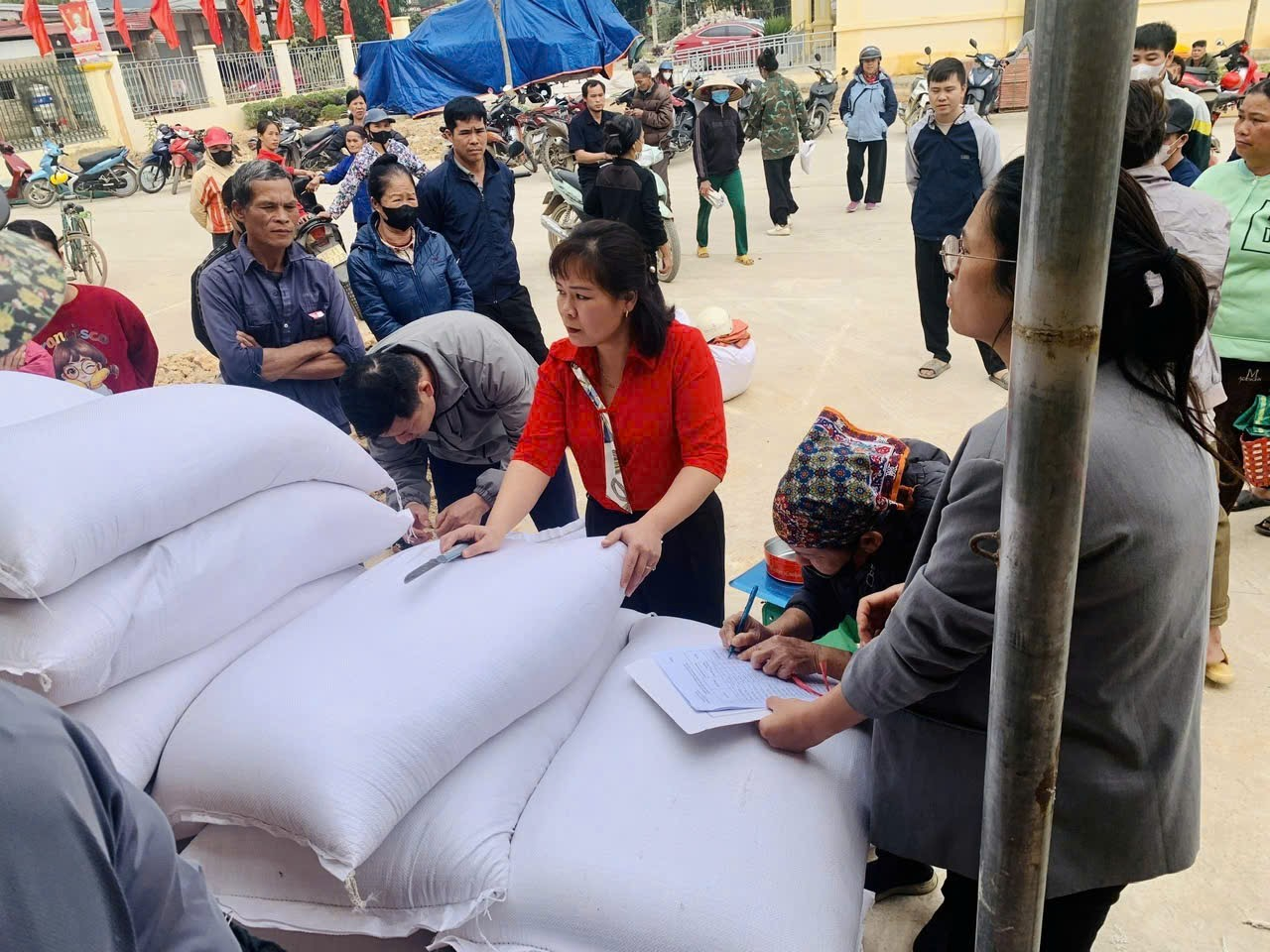 Người dân xã Quốc Khánh đến nhận gạo