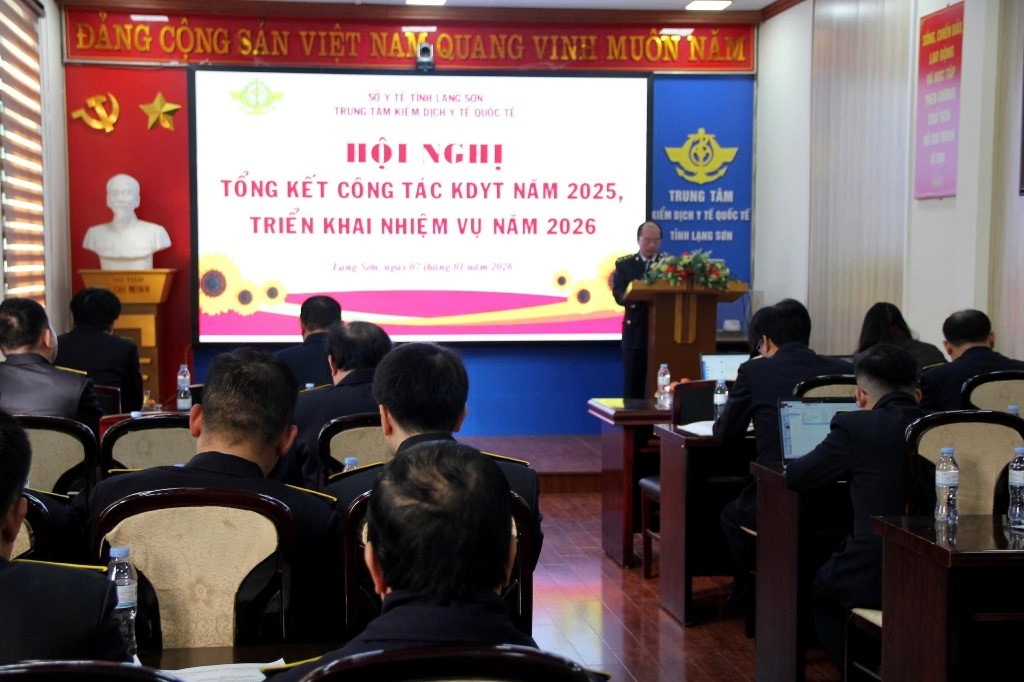Ngày 07/01/2026, Trung tâm Kiểm dịch Y tế quốc tế Lạng Sơn tổ chức hội nghị tổng kết công tác kiểm dịch y tế năm 2025, triển khai nhiệm vụ năm 2026. Đồng chí Lý Kim Soi, Phó Giám đốc Sở Y tế dự và chỉ đạo hội nghị. Tham dự, có đại diện các phòng trực thuộc Sở Y tế cùng toàn thể cán bộ, viên chức, người lao động Trung tâm.