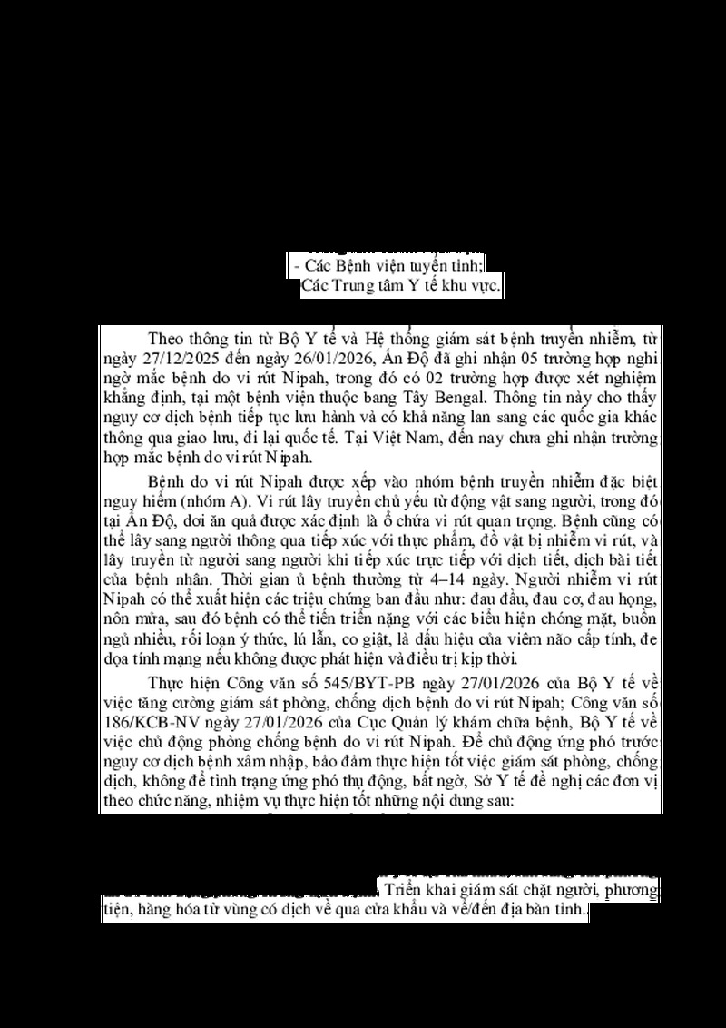 | Tiêu đề văn bản | tăng cường công tác giám phòng, chống dịch bệnh do vi rút Nipah | ||