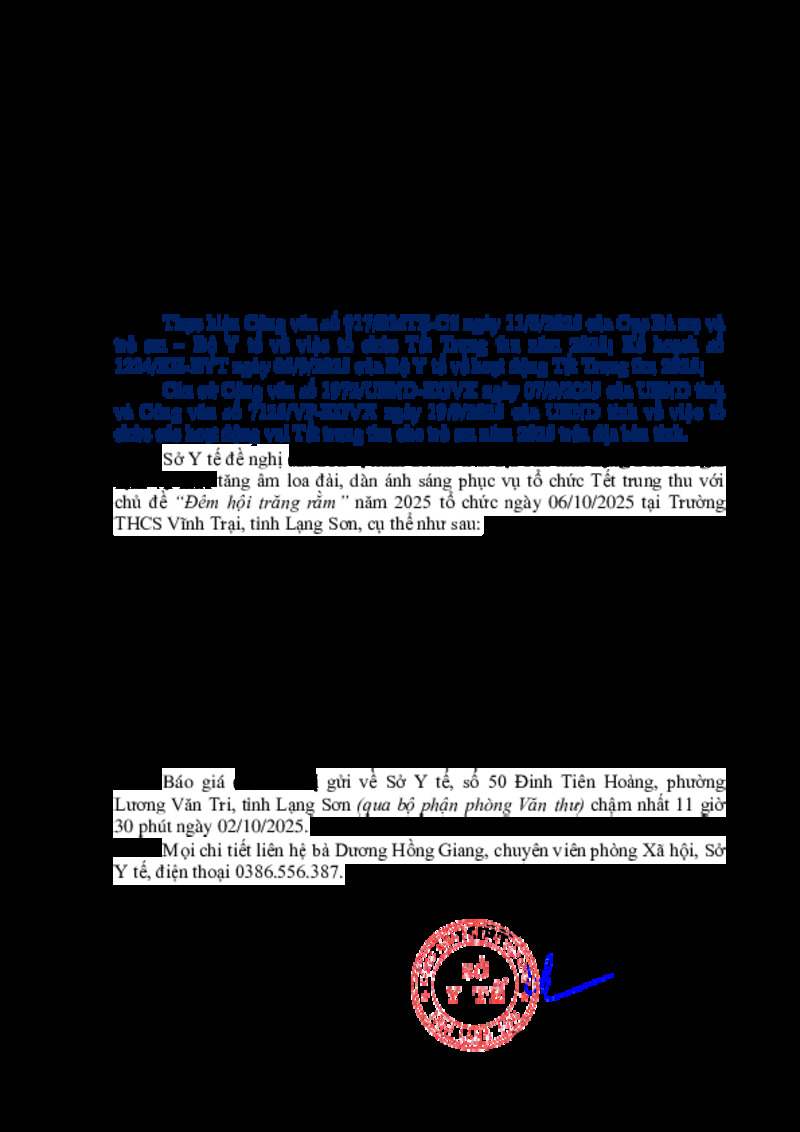 Tiêu đề văn bản | đề nghị báo giá dịch vụ thuê tăng âm, loa đài, ánh sáng phục vụ tổ chức Tết trung thu với chủ đề “Đêm hội trăng rằm” năm 2025 cho trẻ em | ||