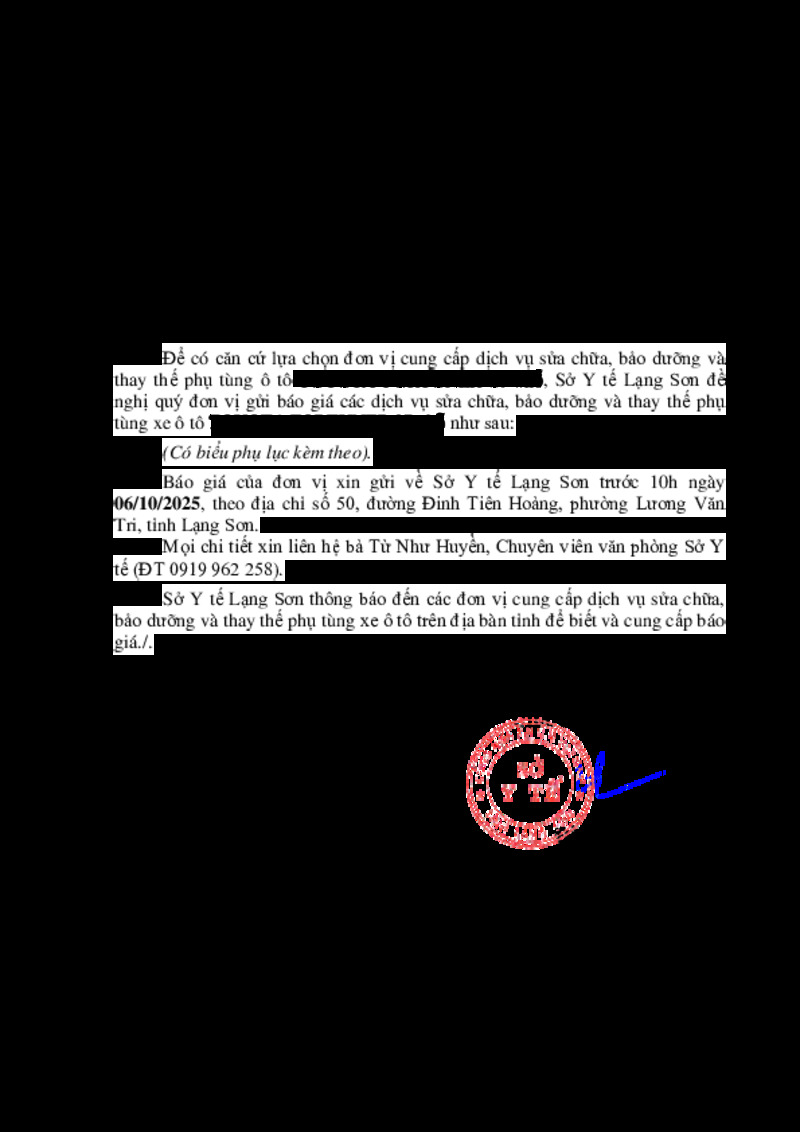 Tiêu đề văn bản | đề nghị cung cấp báo giá dịch vụ sửa chữa, bảo dưỡng và thay thế phụ tùng ô tô TOYOTA FORTUNER | ||