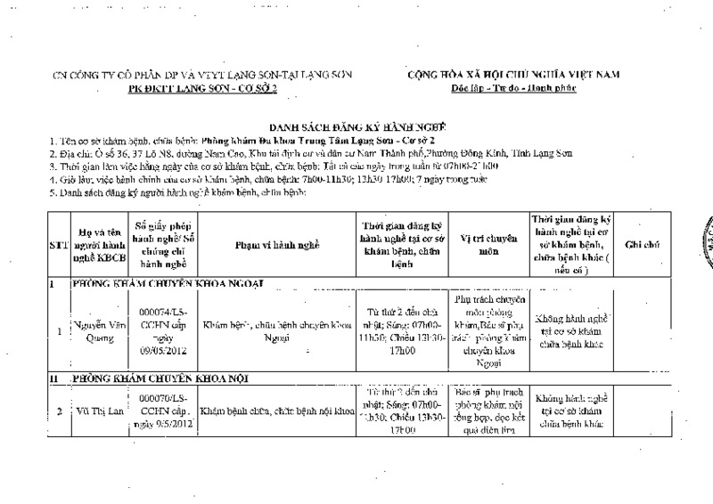 Tiêu đề văn bản | V/v đăng tải danh sách đăng ký hành nghề của Phòng khám đa khoa trung tâm Lạng Sơn - cơ sở 2 (bổ sung: Bế Thị Hà) | ||