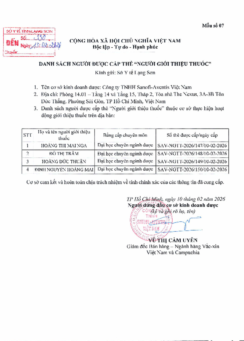Danh sách người được cấp thẻ người giới thiệu thuốc