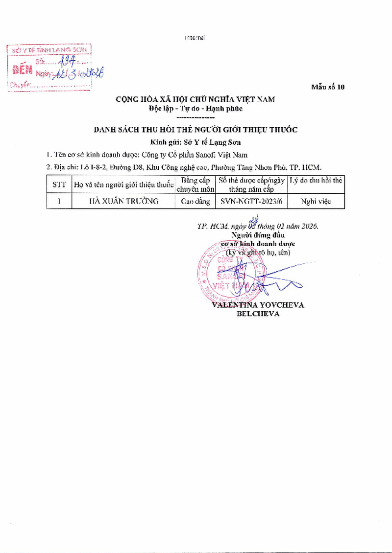 Danh sách người được cấp thẻ người giới thiệu thuốc