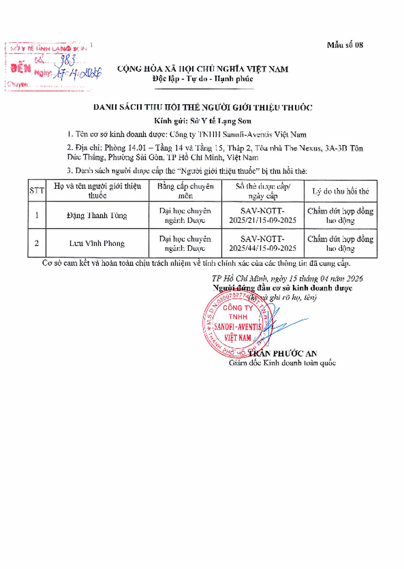 Danh sách người được cấp thẻ người giới thiệu thuốc