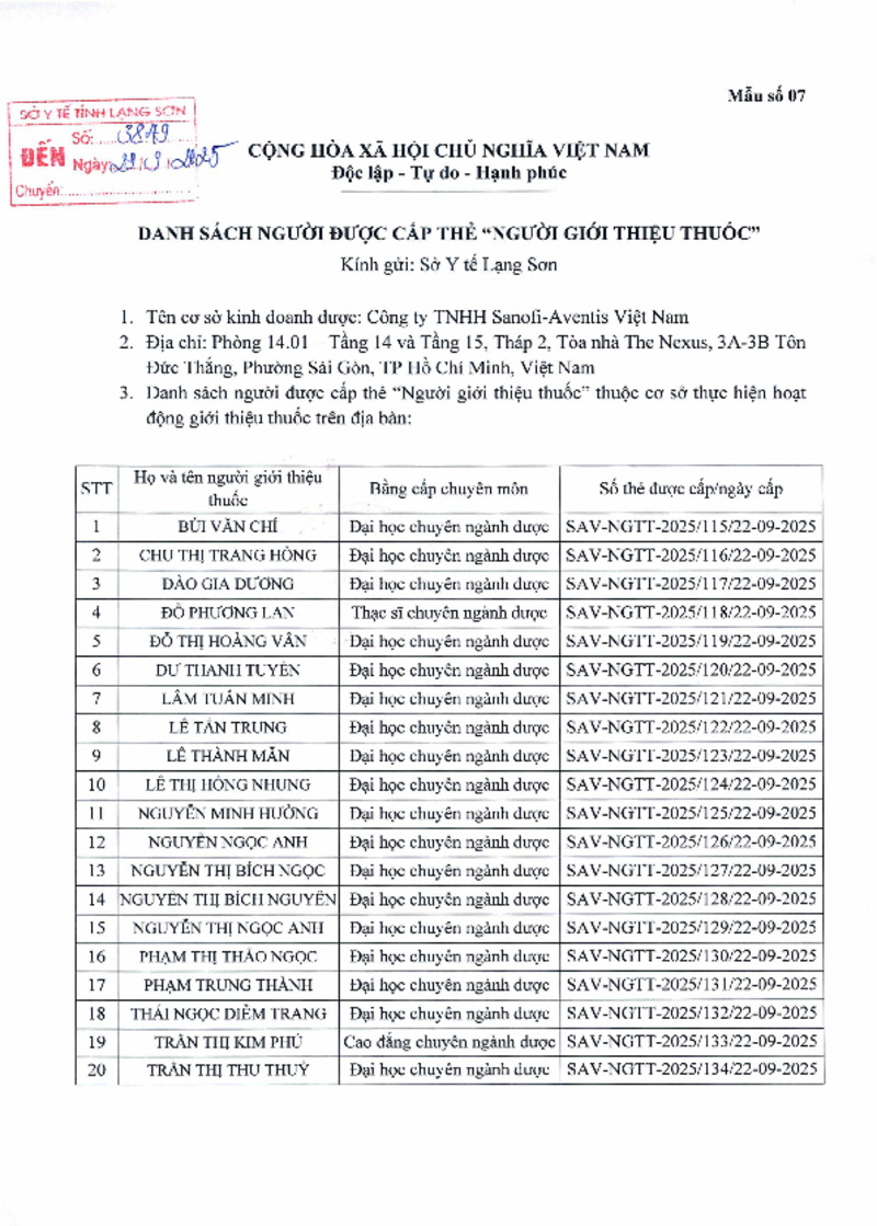 Tiêu đề văn bản | Danh sách người được cấp thẻ người giới thiệu thuốc | ||