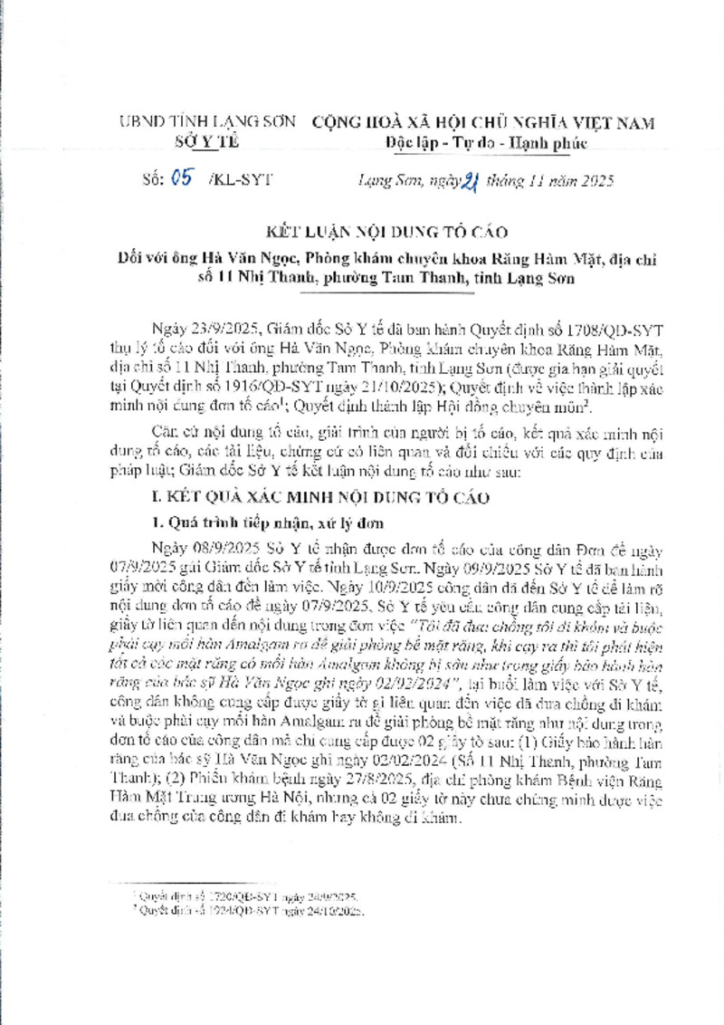 | Số hiệu | 05/KL-SYT | Cơ quan ban hành | --- |