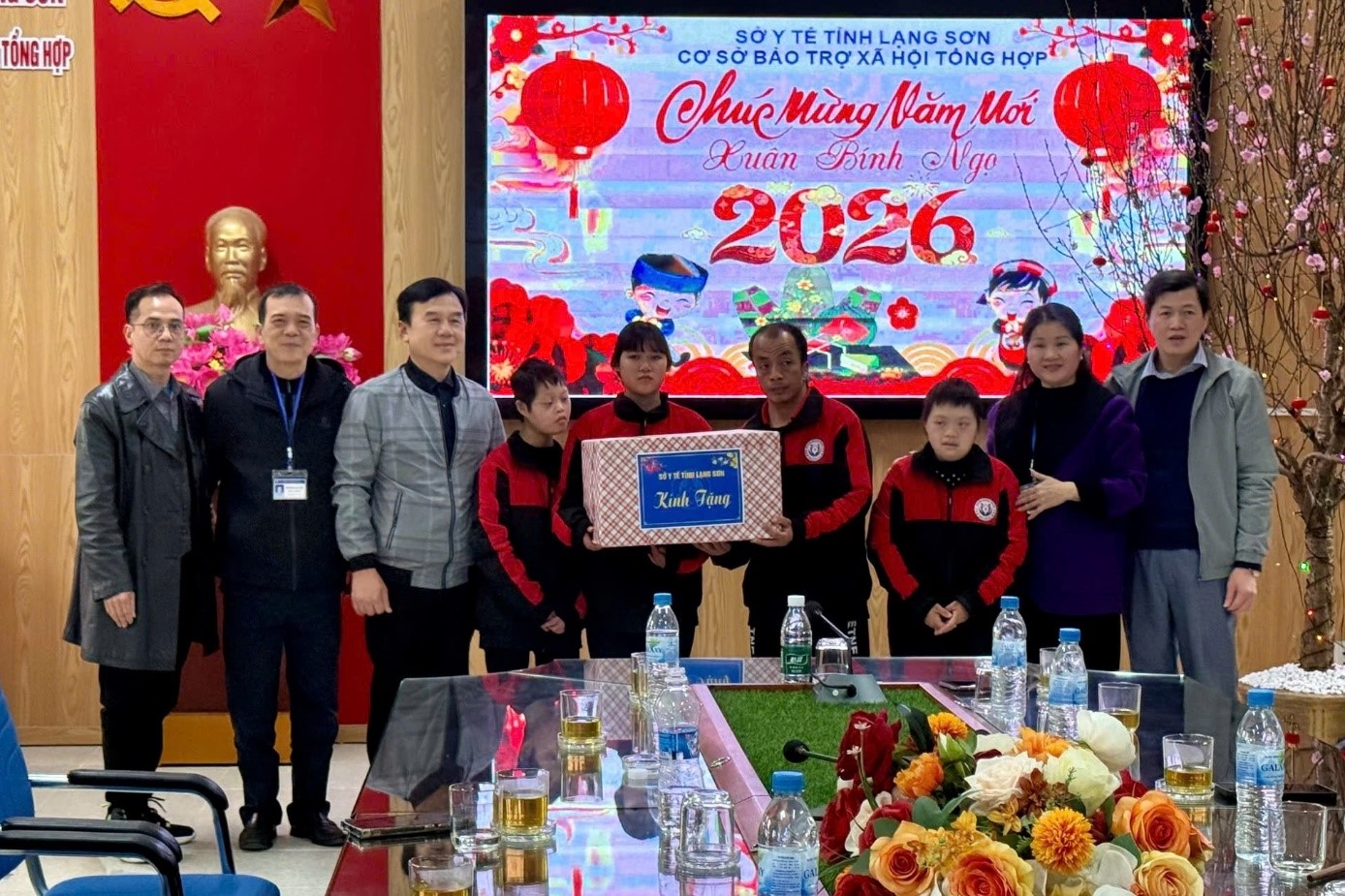 Nhân dịp này, đoàn công tác của Sở Y tế do đồng chí Phan Lạc Hoài Thanh, Phó Giám đốc Sở Y tế cùng lãnh đạo Văn phòng Sở, Phòng Xã hội và đại diện lãnh đạo Hội doanh nghiệp trẻ Lạng Sơn đã thăm hỏi, động viên, trao tặng quà Tết cho cán bộ viên chức, người lao động và các đối tượng đang được chăm sóc, nuôi dưỡng tại Cơ sở Bảo trợ xã hội tổng hợp tỉnh Lạng Sơn.