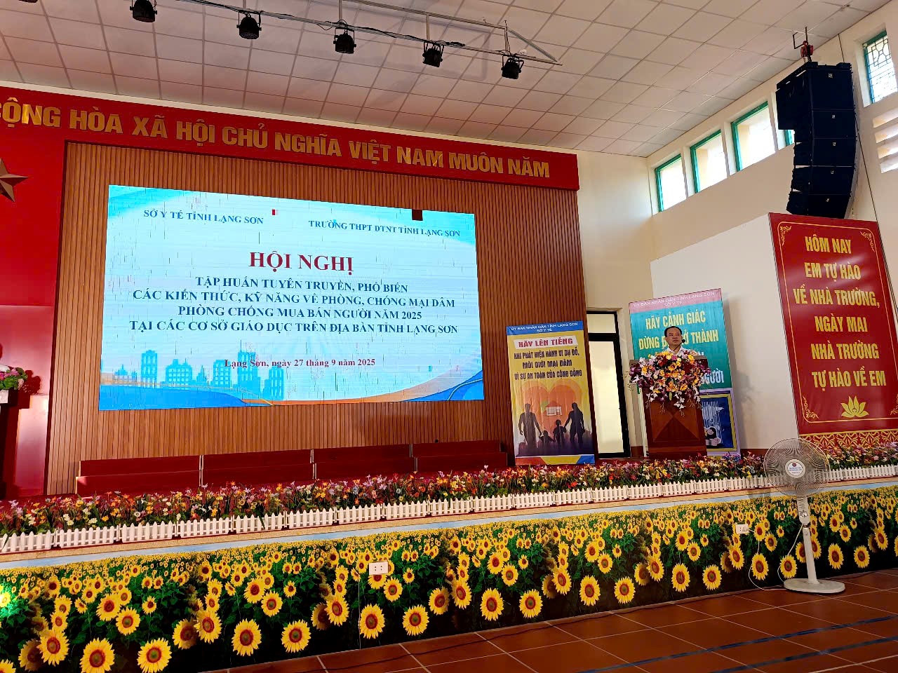 Nhằm nâng cao nhận thức và ý thức chấp hành pháp luật về phòng, chống mại dâm và phòng, chống mua bán người đồng thời là một trong các nội dung hoạt động thiết thực hưởng ứng tháng hành động về phòng, chống mua bán người năm 2025. Trong các ngày 22/9/2025 và 27/9/2025, Sở Y tế tỉnh Lạng Sơn đã phối hợp với Trung tâm Giáo dục Nghề nghiệp- Giáo dục Thường Xuyên Cao Lộc và Trường Trung học Phổ thông- Dân tộc Nội trú tỉnh tổ chức hội nghị tập huấn tuyên truyền phổ biến kiến thức kỹ năng về phòng, chống mại dâm và Phòng, chống mua bán người cho gần 80 lượt cán bộ, giáo viên và trên 1600 học sinh, sinh viên nhà trường.