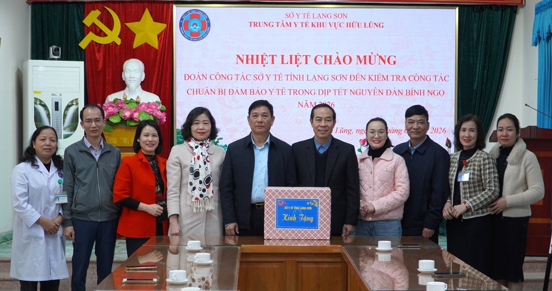 Ngày 04/02/2026, Đoàn công tác của Sở Y tế do đồng chí Lý Kim Soi, Phó Giám đốc Sở Y tế làm trưởng đoàn đã kiểm tra công tác đảm bảo y tế Tết Nguyên Đán Bính Ngọ 2026 và tặng quà Tết cho cán bộ, nhân viên y tế của Trung tâm Y tế khu vực Hữu Lũng và Chi Lăng. Tham gia đoàn công tác có đại diện các phòng thuộc Sở Y tế.