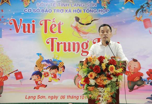 (Đồng chí Nguyễn Thế Toàn, Giám đốc Sở Y tế dự và phát biểu tại Chương trình Vui tết Trung thu ở Cơ sở Bảo trợ xã hội tổng hợp tỉnh)
