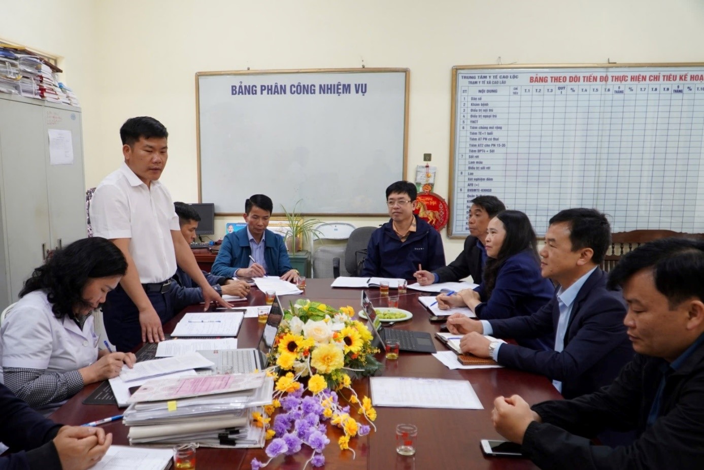 Đoàn giám sát của Sở Y tế nghe báo cáo hoạt động của Trạm Y tế xã Ba Sơn