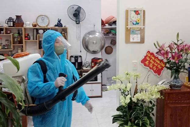 Phun hóa chất diệt muỗi tại các gia đình trên địa bàn Khối 1, phường Kỳ Lừa