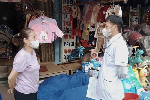Cán bộ y tế tuyên truyền phòng chống sốt xuất huyết cho người dân tại phường Kỳ Lừa, tỉnh Lạng Sơn