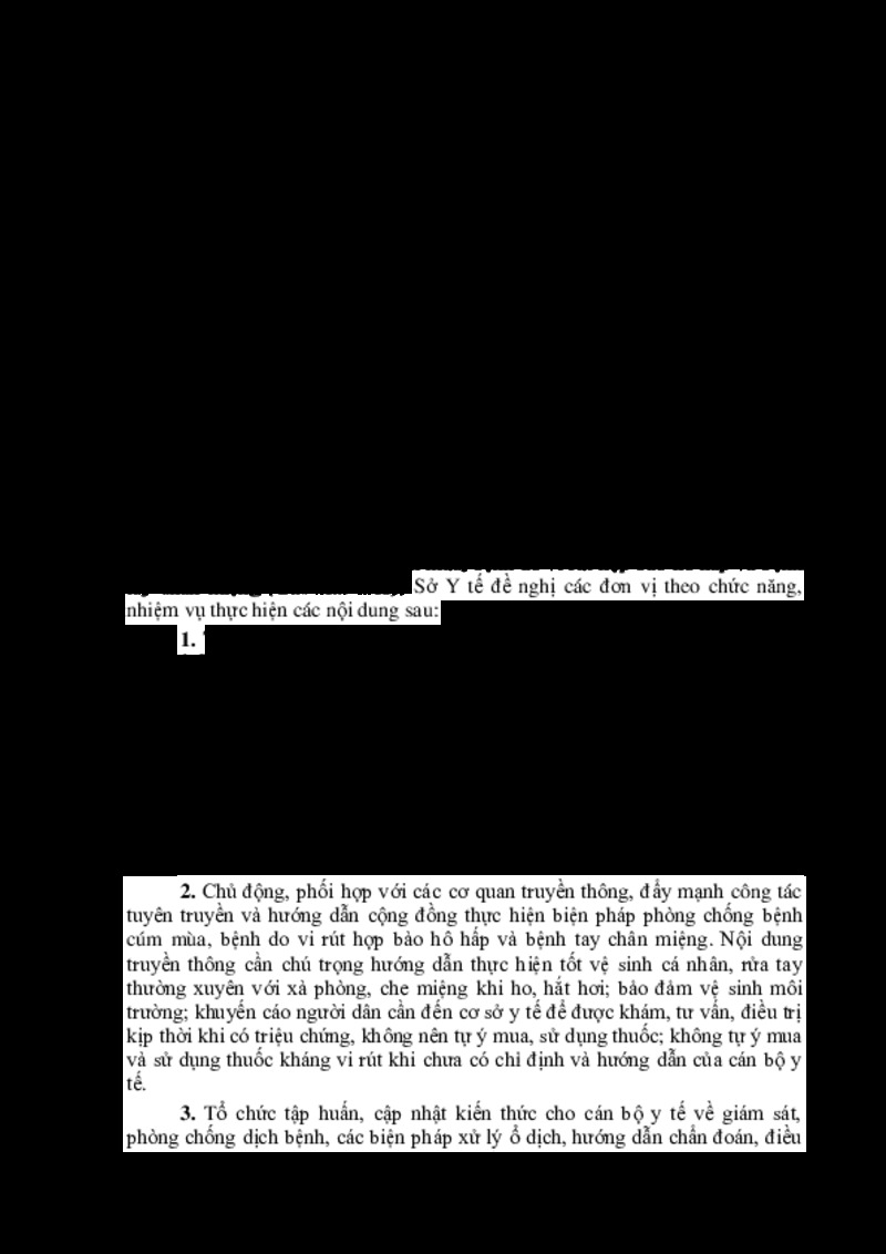 | Tiêu đề văn bản | tăng cường triển khai các hoạt động phòng, chống bệnh cúm mùa, bệnh do vi rút hợp bào hô hấp và bệnh tay chân miệng | ||